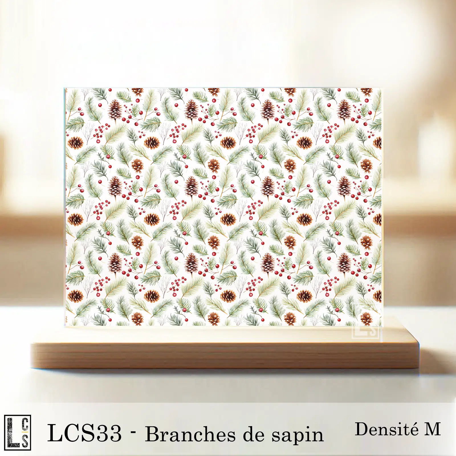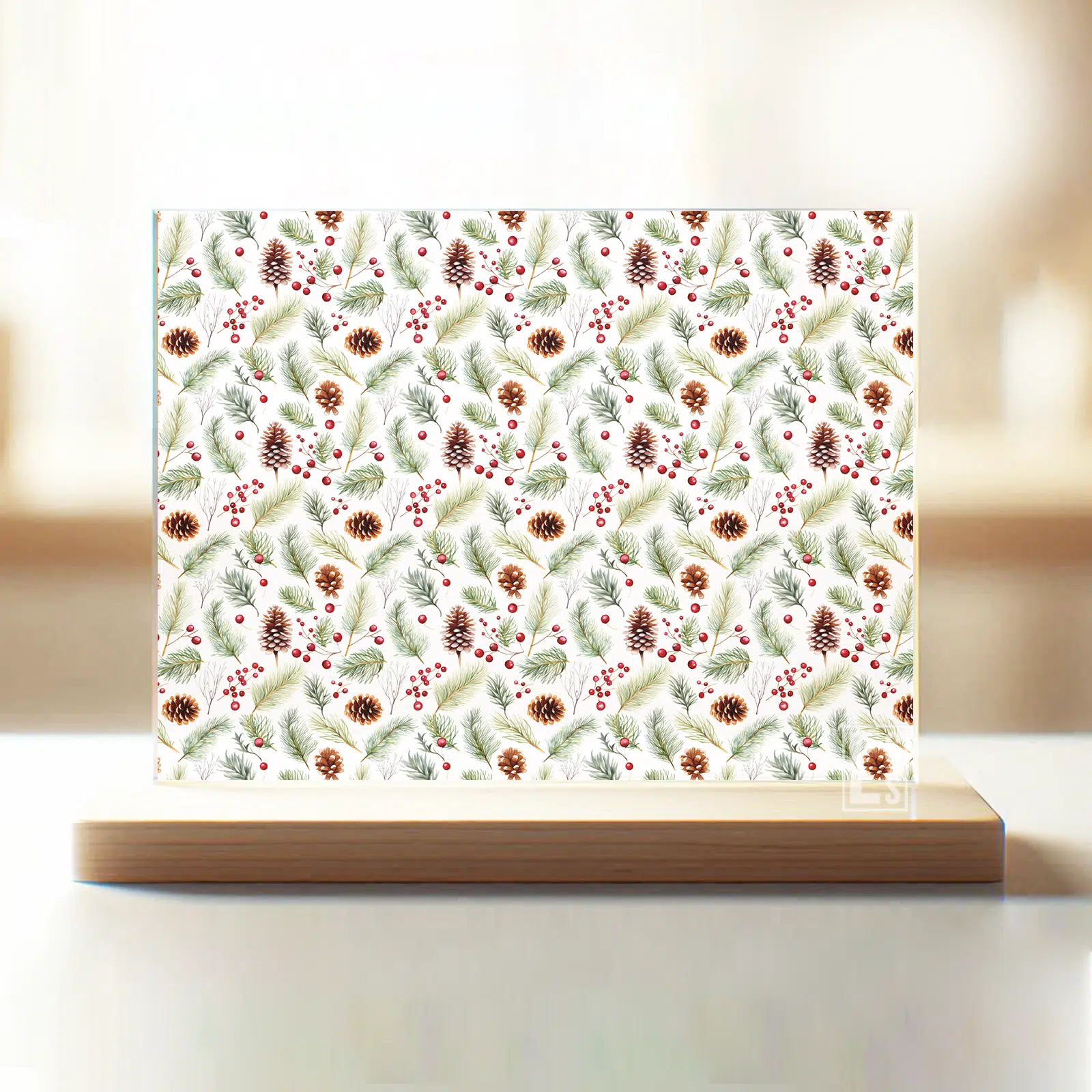 Offrez à vos créations une ambiance forestière authentique avec ce motif unique de branches de sapin et de pommes de pin.