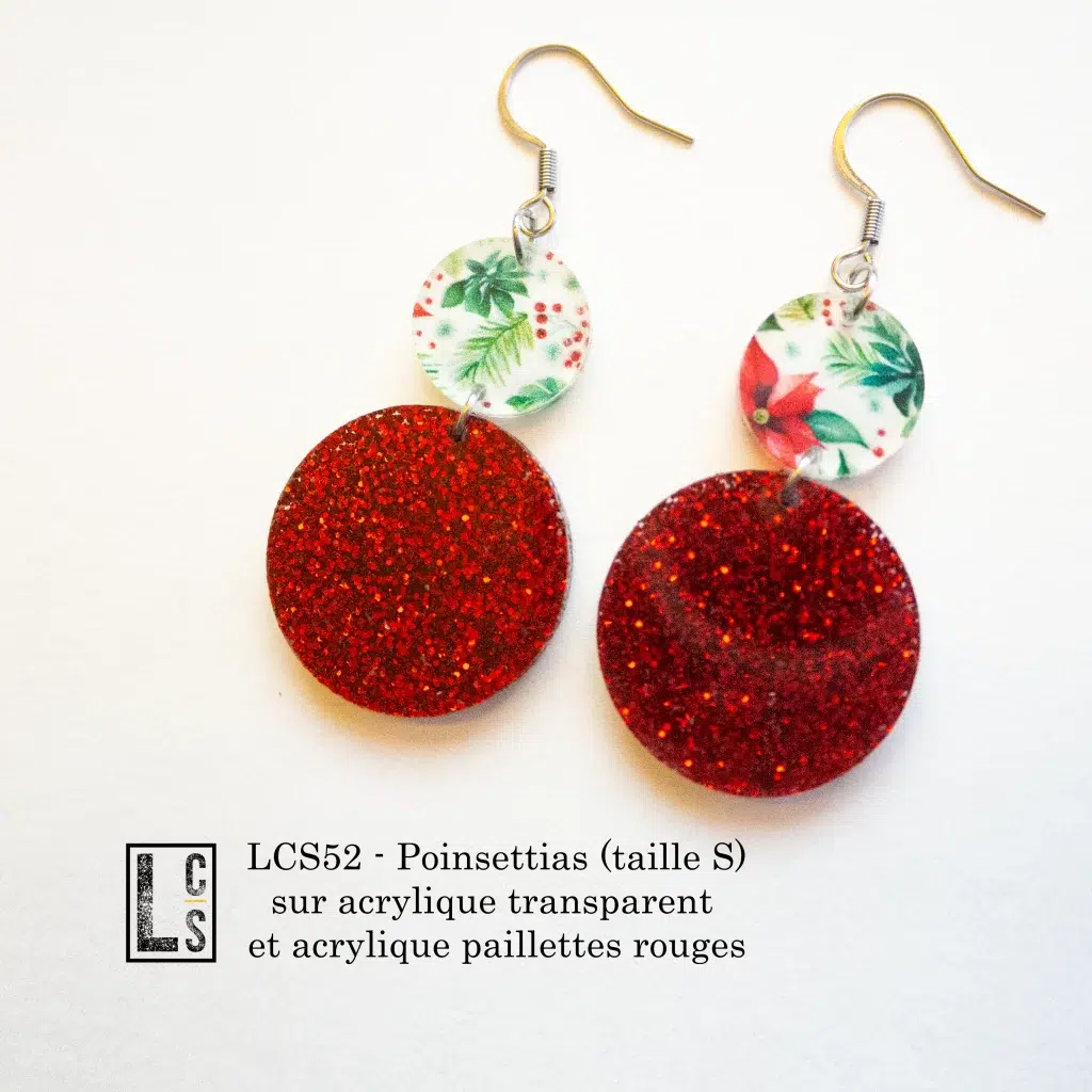 Boucles d’oreilles – Motif poinsettias en taille S sur acrylique transparent (LCS52)